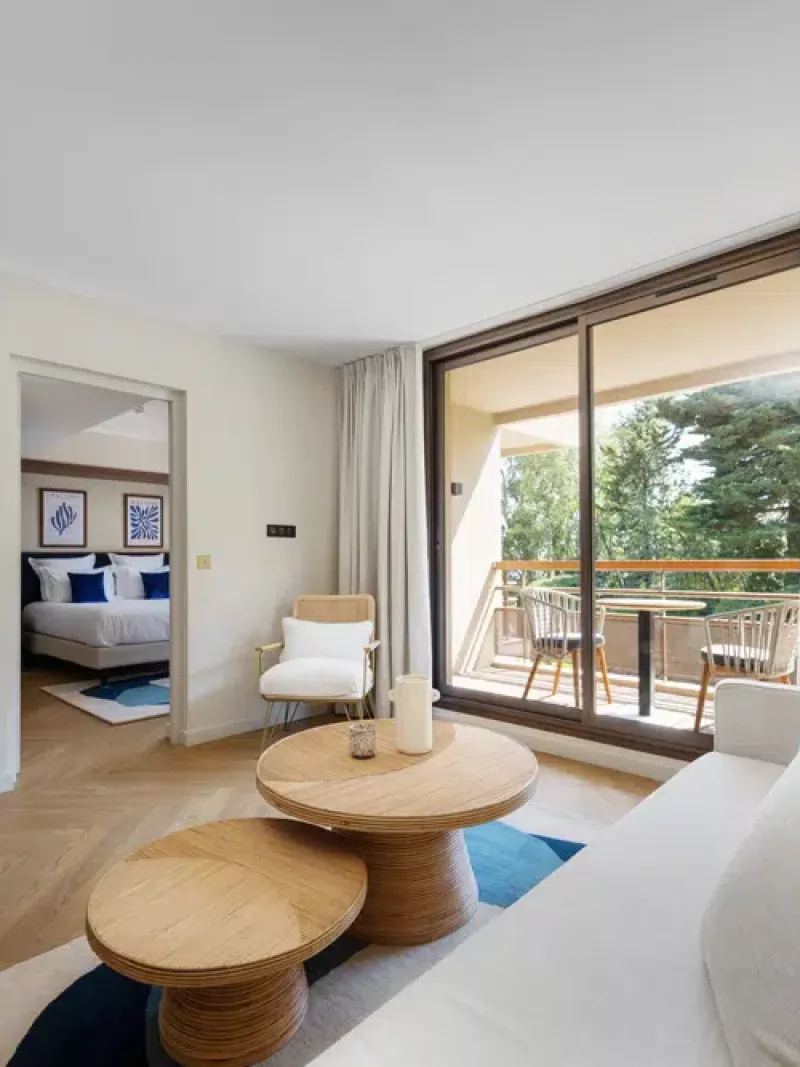 Pensée pour le confort des familles, la Suite Familiale se compose de deux pièces séparées, offrant espace et intimité à chacun. Son décor contemporain aux tons doux crée une atmosphère chaleureuse et apaisante. Ouverte sur un jardin privatif ou un balcon, elle constitue un cadre idéal pour un séjour familial haut de gamme à Saint-Raphaël.