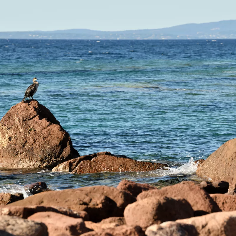 Aller à Saint-Raphaël par le bord de mer, c’est prendre un peu d’altitude pour rouler sur des routes sinueuses et sauvages pour admirer une vue imprenable. Traverser le massif de l’Estérel, éblouit immédiatement par la beauté de ses roches couleur ocre qui contrastent magnifiquement avec cette flore méditerranéenne verdoyante. Ici, le Cap Dramont vous accueille vers un sentier du littoral incroyable, menant à une plage paradisiaque : Tortù.